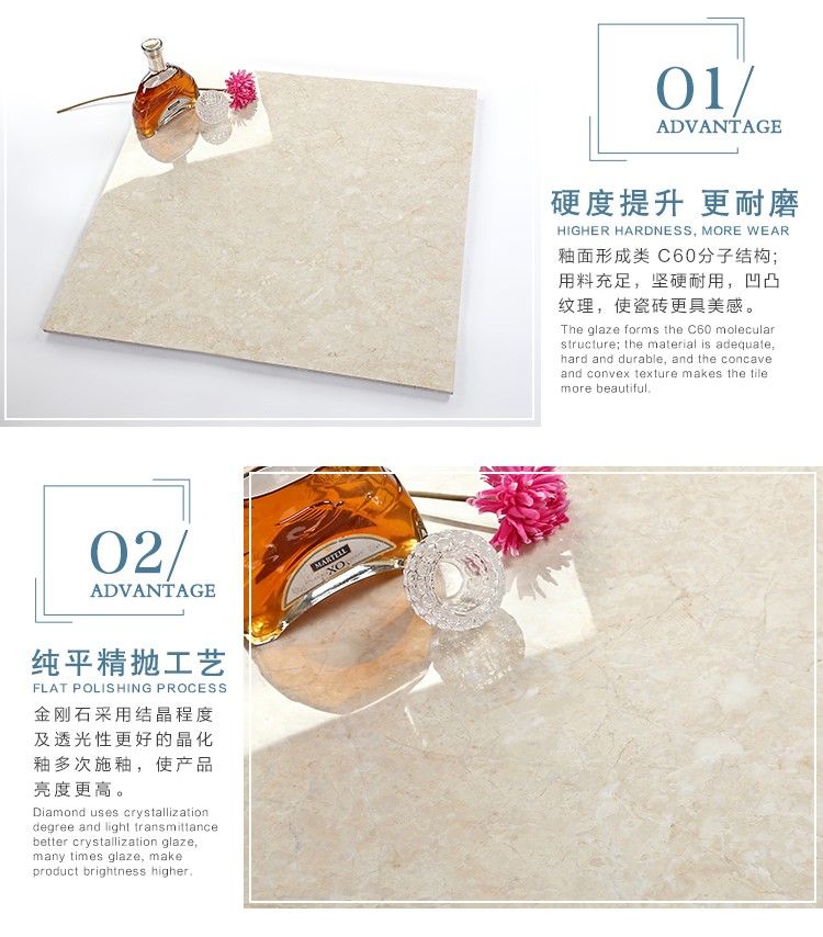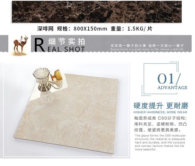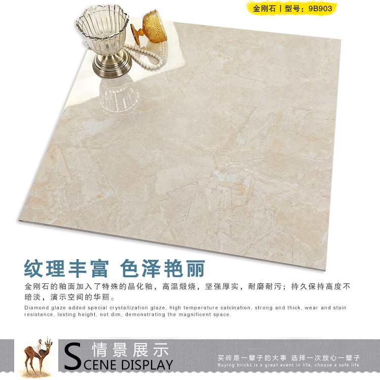 金曼古瓷磚廠家特價(jià)金剛石因高品質(zhì)而得名,是一款極具天然石材效果和微晶石質(zhì)感的仿石材瓷磚,它不但在價(jià)格、環(huán)保、耐用和清潔上極具優(yōu)勢(shì),在質(zhì)感、規(guī)格、花色、重量等指標(biāo)上,金剛石都遠(yuǎn)遠(yuǎn)勝于石材、拋光磚。相比其他種類的產(chǎn)品,它最大的特點(diǎn)可以用“高亮度、高耐磨、高平整、高逼真、高清晰、高環(huán)保”。