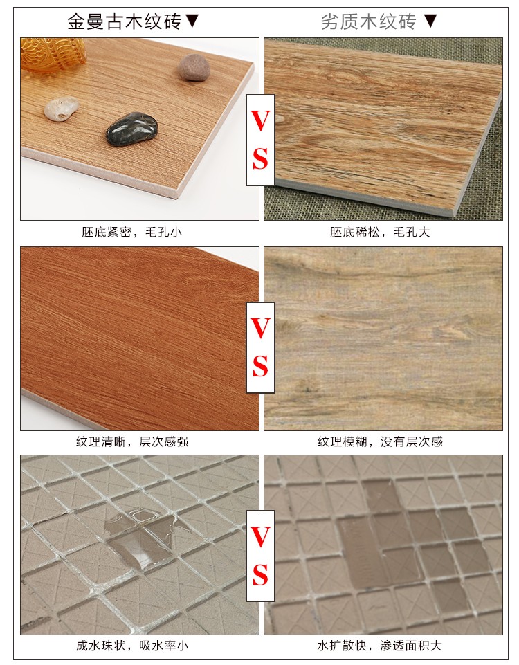 金曼古木紋磚,是一種表面呈現木紋裝飾圖案的環保建材.紋路逼真、自然樸實、沒有木地板褪色、不耐磨等缺點;曼古陶瓷木紋磚系列線條明快,圖案清晰為特色。本身具有阻燃,不腐蝕的特點,綠色、環保型建材;產品使用壽命長,耐磨,無需像木制產品那樣周期性地打蠟保養等.