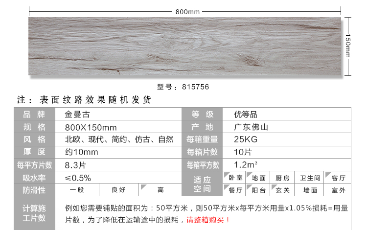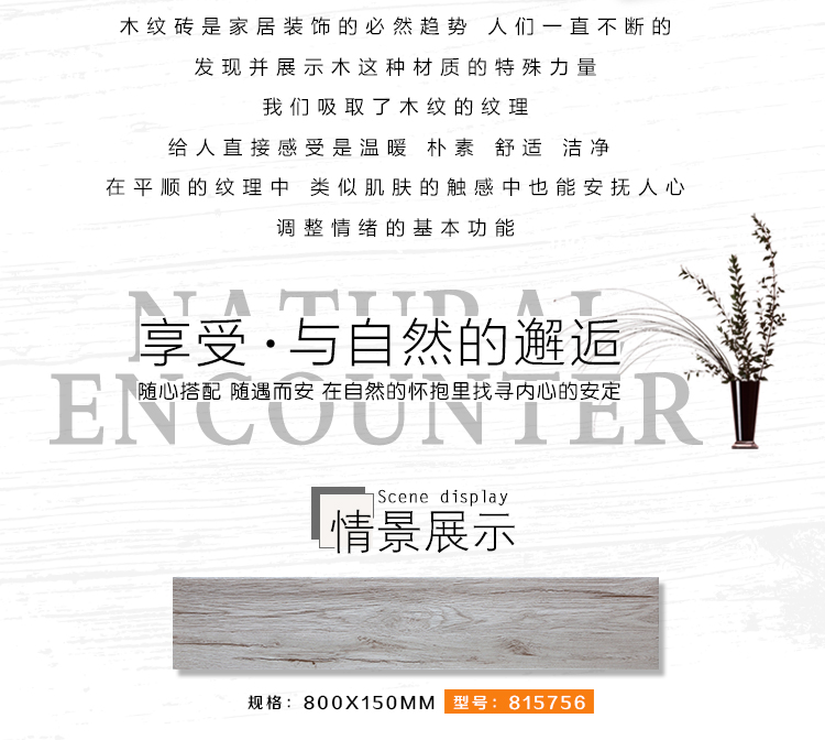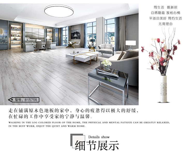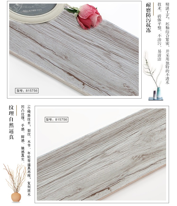 金曼古木紋磚,是一種表面呈現(xiàn)木紋裝飾圖案的環(huán)保建材.紋路逼真、自然樸實、沒有木地板褪色、不耐磨等缺點;曼古陶瓷木紋磚系列線條明快,圖案清晰為特色。本身具有阻燃,不腐蝕的特點,綠色、環(huán)保型建材;產(chǎn)品使用壽命長,耐磨,無需像木制產(chǎn)品那樣周期性地打蠟保養(yǎng)等.