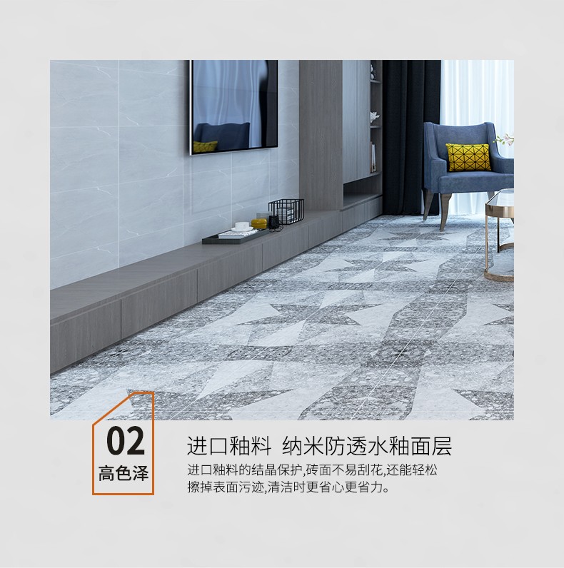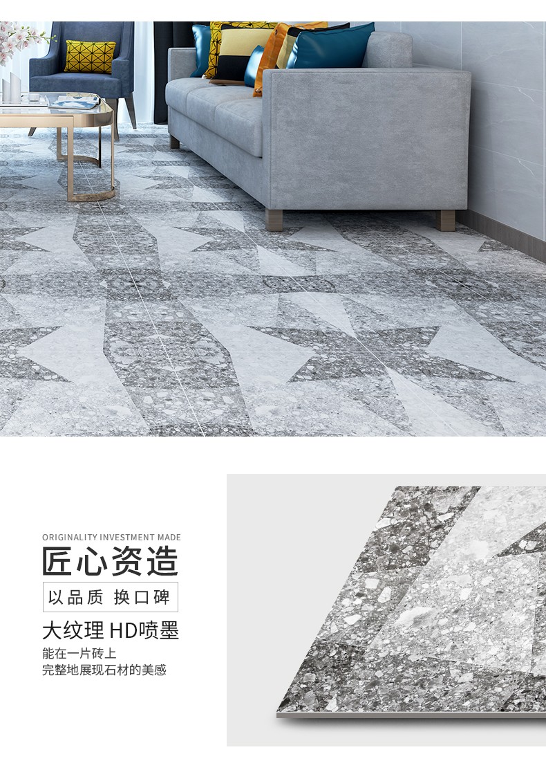 金曼古仿古地磚,采用國際先進的超大型壓機自動成型,經世界一流的滾筒印花和高溫煅燒而成,通過仿石、仿巖、仿木、仿布、仿金屬等多種表現方式,產品花色圖案新穎時尚,領先國際潮流,具有超耐磨、防滑、防污等高性能指標。
