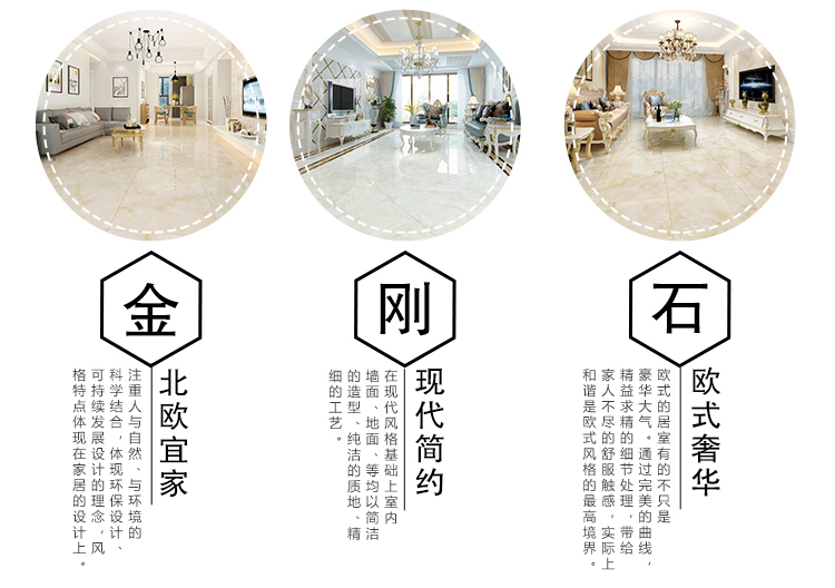 金曼古瓷磚廠家特價金剛石因高品質而得名,是一款極具天然石材效果和微晶石質感的仿石材瓷磚,它不但在價格、環保、耐用和清潔上極具優勢,在質感、規格、花色、重量等指標上,金剛石都遠遠勝于石材、拋光磚。相比其他種類的產品,它最大的特點可以用“高亮度、高耐磨、高平整、高逼真、高清晰、高環保”。